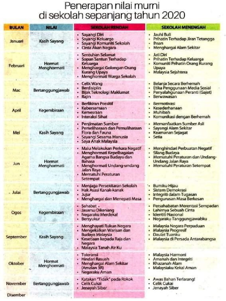 Oleh itu sekolah amat berperanan penting dalam merapatkan jurang antara kaum ini dalam menerapkan nilai-nilai murni kepada murid-murid. 9 Ogos 2022- Saluran khusus TV pendidikan atau lebih dikenali DidikTV KPM merupakan satu platform untuk memperkasakan budaya ilmu menerapkan nilai-nilai murni dan mewujudkan masyarakat berinformasi. Dalam konteks kerja pula rakan yang memp unyai nilai-nilai moral yang tinggi akan menjadi pendorong kepada kita untuk melakukan kerja dengan penuh bertanggungjawab.
